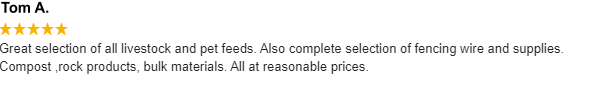 and supplies. Stop on in to our friendly feed store for foods & supplies for your horses, livestock & pets.